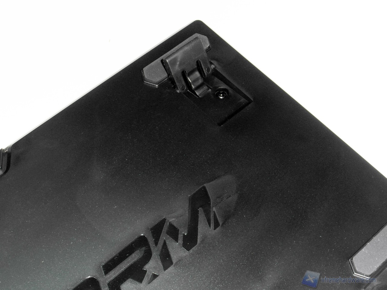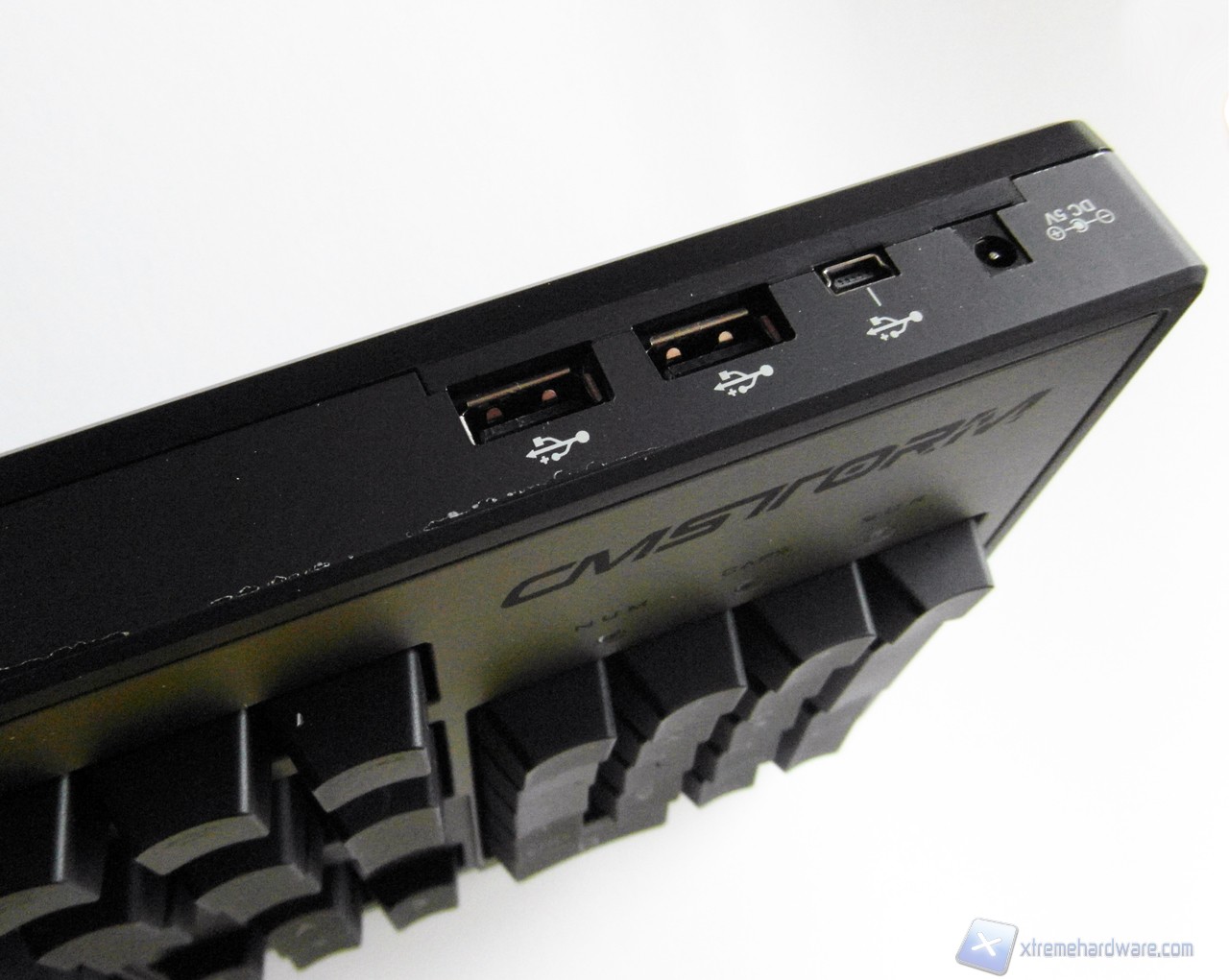 La parte inferiore non presenta particolari soluzioni, troviamo infatti unicamente i due consueti piedini per regolare l'inclinazione della tastiera e al centro il logo CM Storm.
