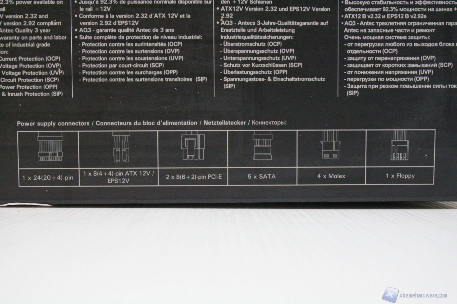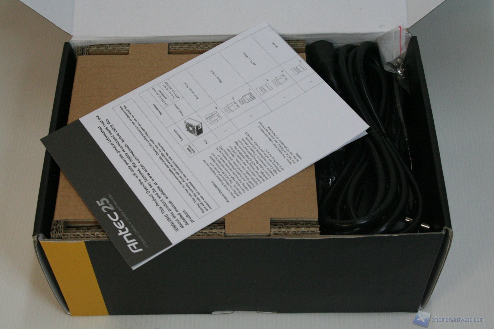 Non ci dilunghiamo molto sulla confezione esterna in quanto le immagini sono particolarmente esplicative; ad ogni modo facciamo presente che il numero delle informazioni, per un prodotto simile, è decisamente sopra la media, come da consuetudine Antec. L’imballo è più che soddisfacente e l’organizzazione interna ottima, similmente all’altro alimentatore HCP-850. Vi mostriamo le foto dirette:
