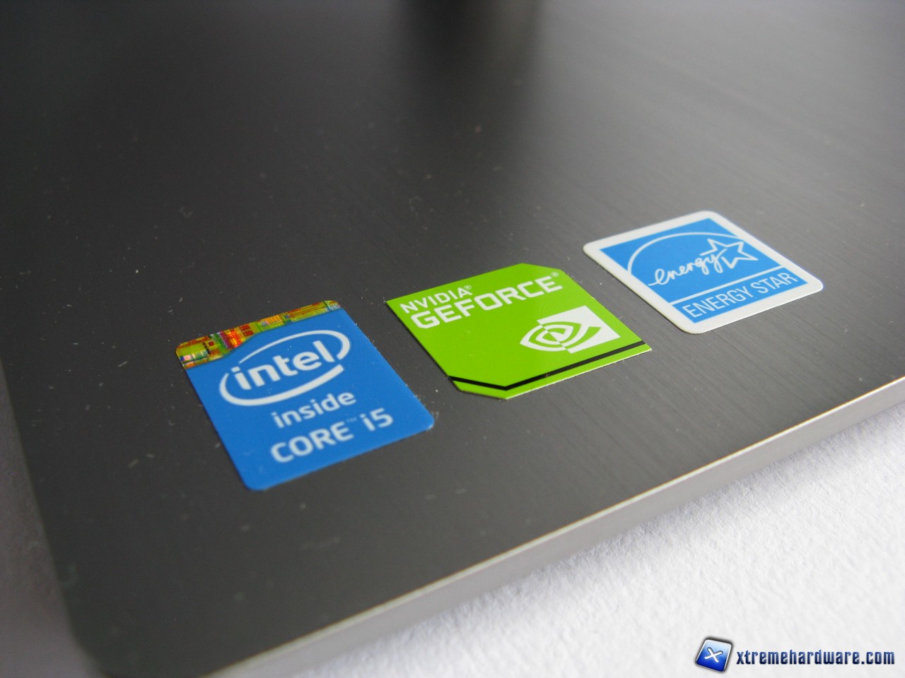 Spostandosi verso il basso troviamo quindi la base di appoggio del PC, anch'essa in alluminio spazzolato recante i loghi del produttore della CPU e della GPU.