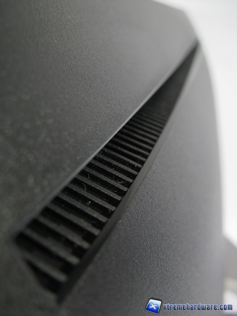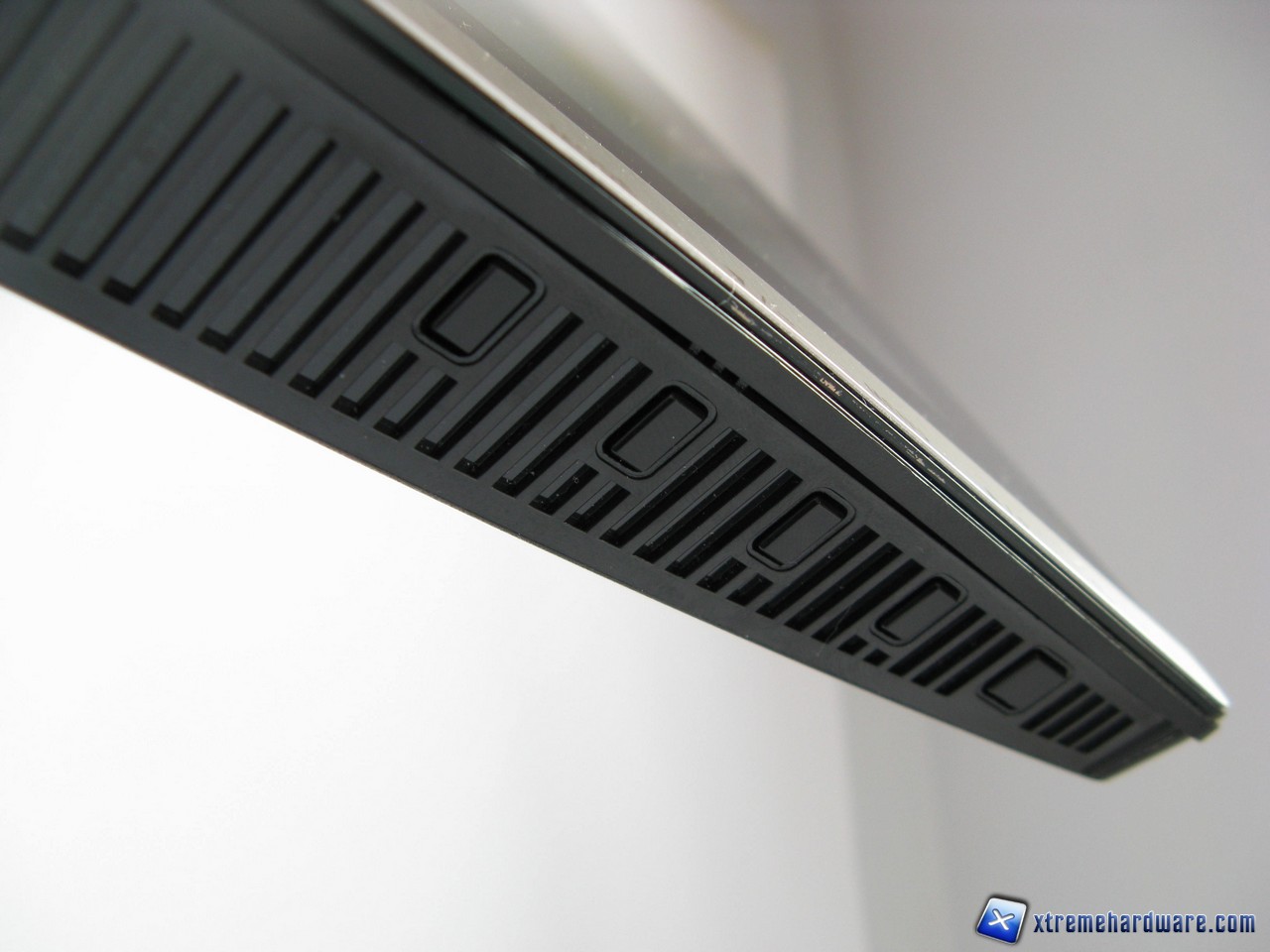 Tutto il lato inferiore è percorso, oltre che dai pulsanti dello schermo e dai connettori descritti in precedenza, da un'apertura utile per portare aria fresca all'interno del PC in modo da raffreddare adeguatamente i componenti. Questa apertura per l'immissione dell'aria è replicata anche nel punto opposto, ovvero il bordo superiore del PC, da cui l'aria calda può uscire sfruttando il naturale effetto convettivo.