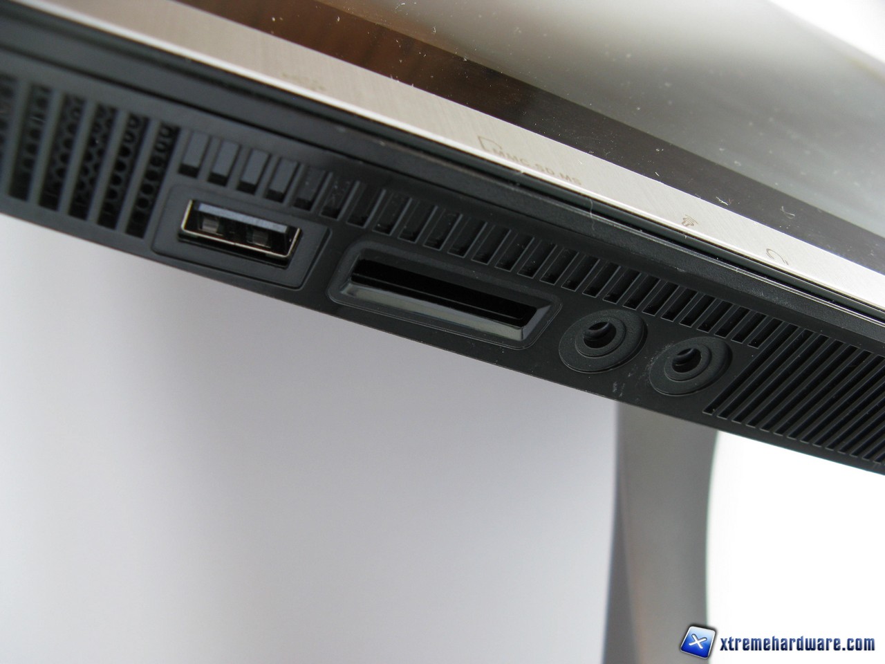 Restando in zona monitor notiamo le belle le icone poste sul bordo inferiore che permettono di identificare facilmente la posizione di alcune porte come quella USB (in standard 2.0), il lettore di schede, il jack per il microfono e quello per gli auricolari. Nella parte destra del bordo inferiore notiamo anche i LEDdi stato dell'HDD e di accensione che vanno a completare il quadro d'insieme congiuntamente alle icone dei vari pulsanti disposti sul lato inferiore dello schermo.
