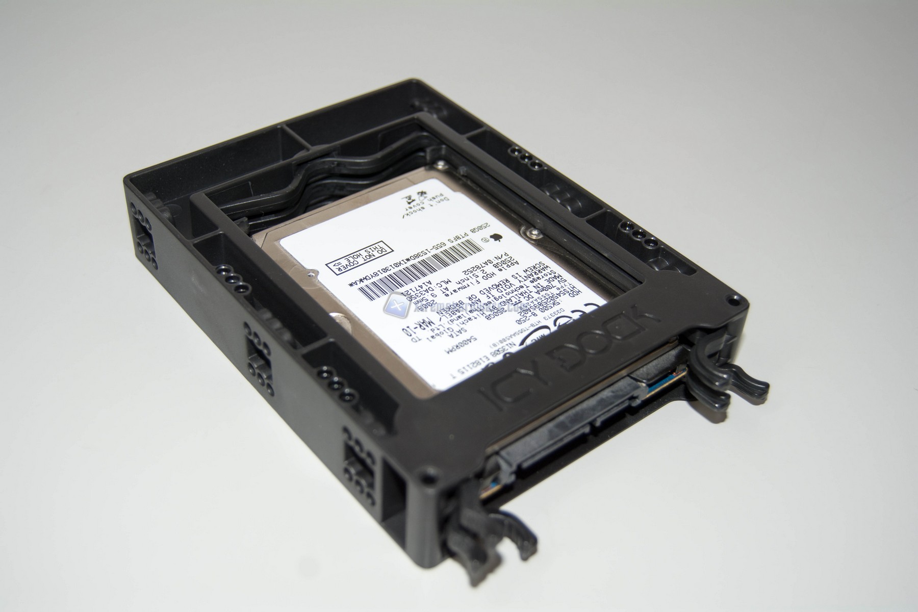 L'installazione del disco è realmente molto semplice basta infatti rimuovere il tray slim in plastica, estrarre la clip in plastica orizzontale ed inserire il disco facendo combaciare le "viti" in plastica incorporate all'interno dei fori laterali del disco.